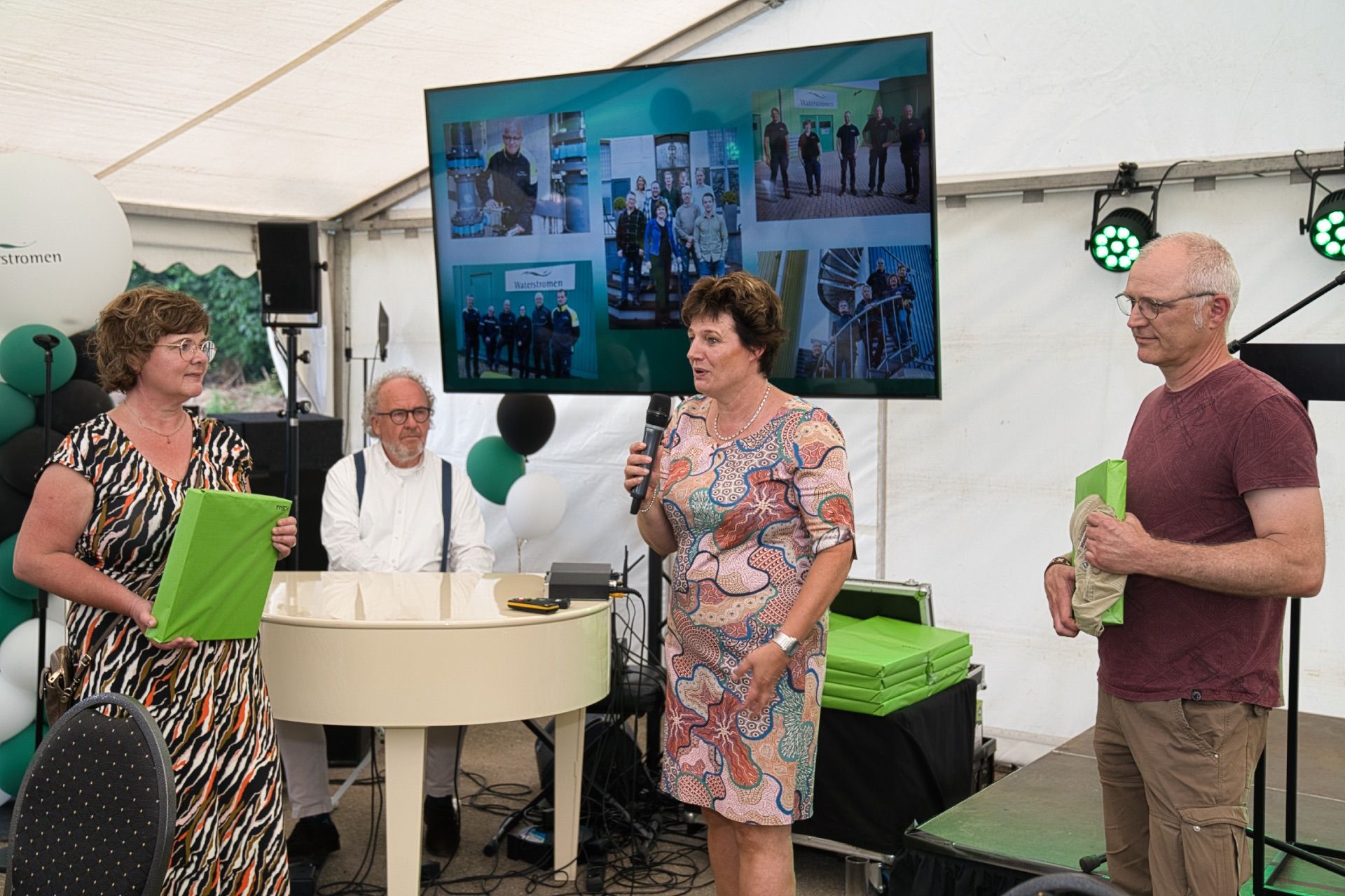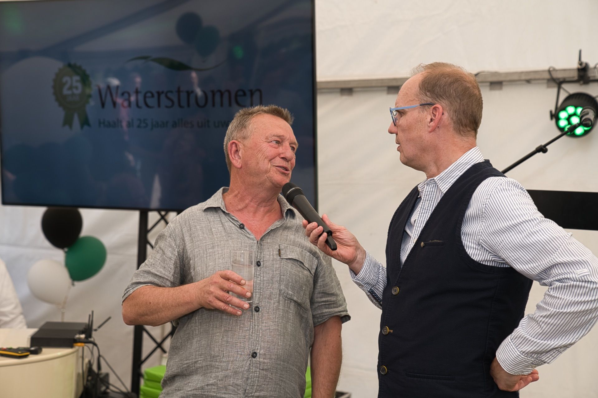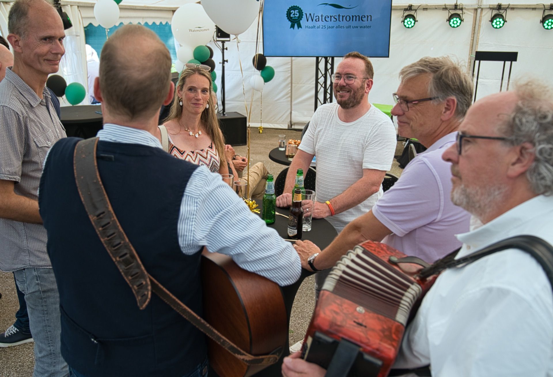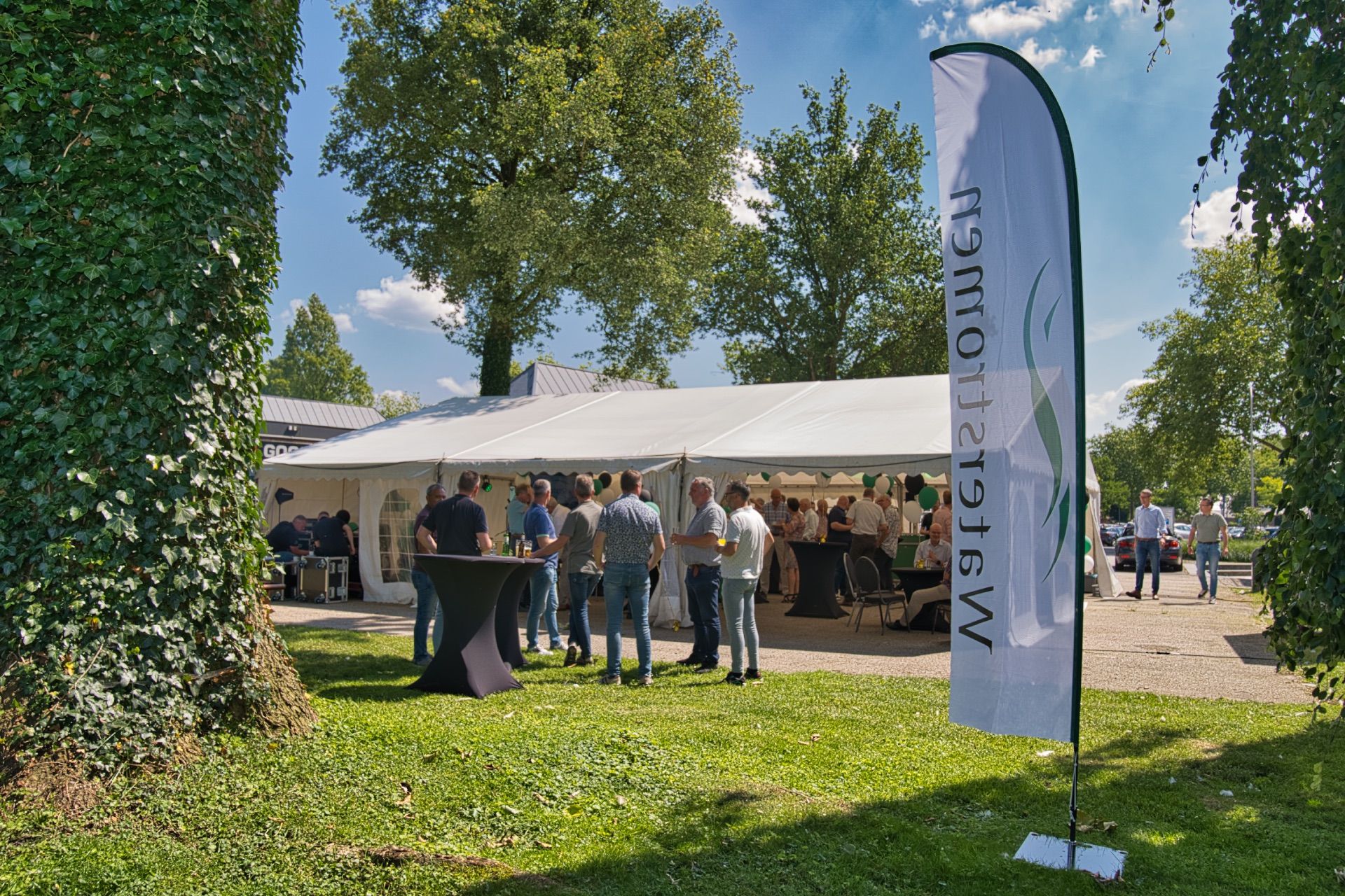 Gisteren hadden we het genoegen om ons 25-jarig jubileum te vieren met een geweldige receptie met klanten en relaties. Het was een gezellige middag in een tent bij ons hoofdkantoor in Lochem aan de Berkel. Richard Haarhuis deelde anekdotes uit de afgelopen 25 jaar en Martine Klaver vertelde over de ontwikkelingen. Hein Pieper, dijkgraaf van Waterschap Rijn en IJssel prees in zijn speech de duurzame initiatieven van Waterstromen.